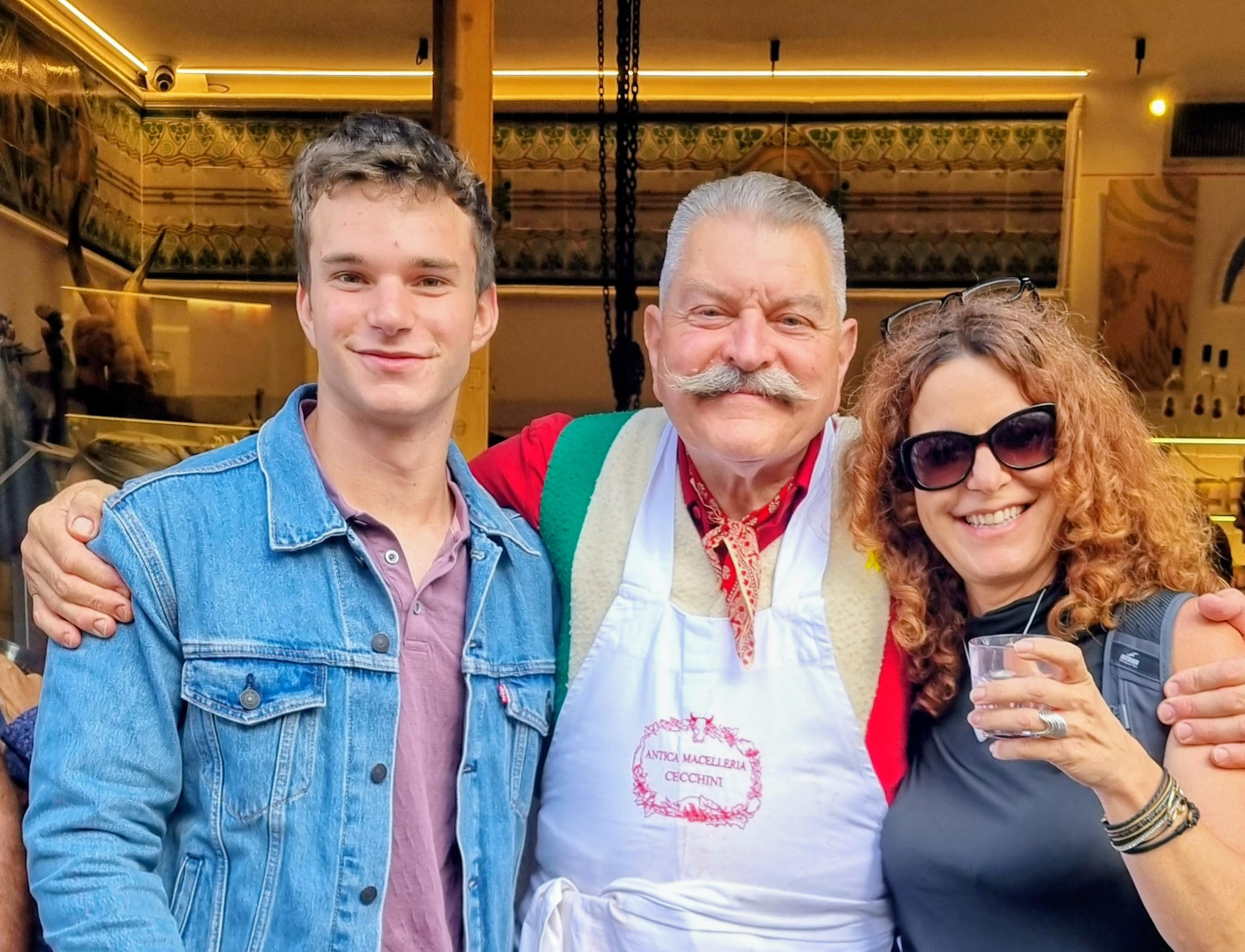 בתמונה הבכור ואני אצל דריו אגדת הבשר הטוסקנית. (שאגב מסתובב עם סמל החטופים על הדש).